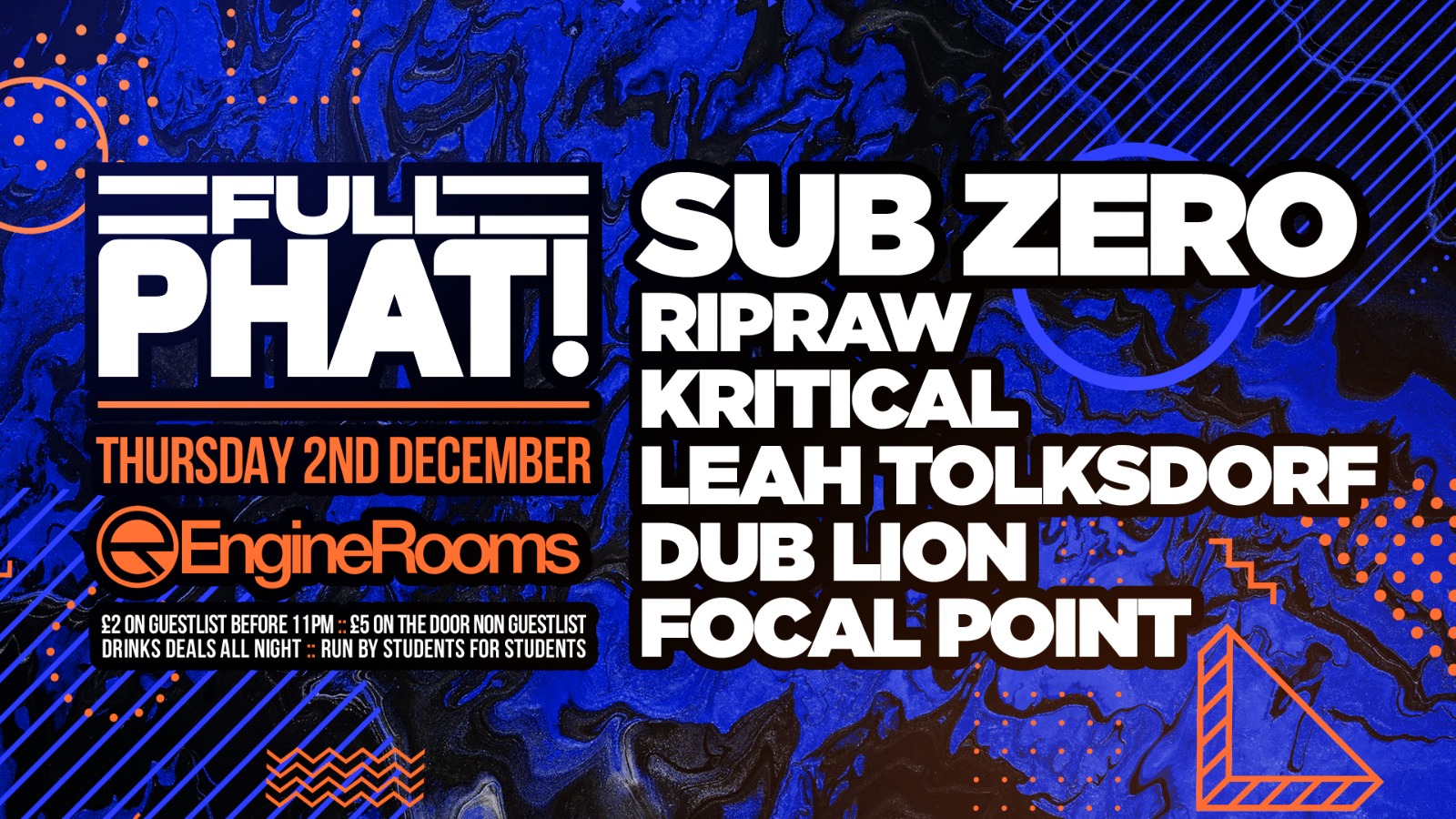 , £5 general entry after 11pm. For Guest list contact our instagram @fullphatsoton or one of our official reps.